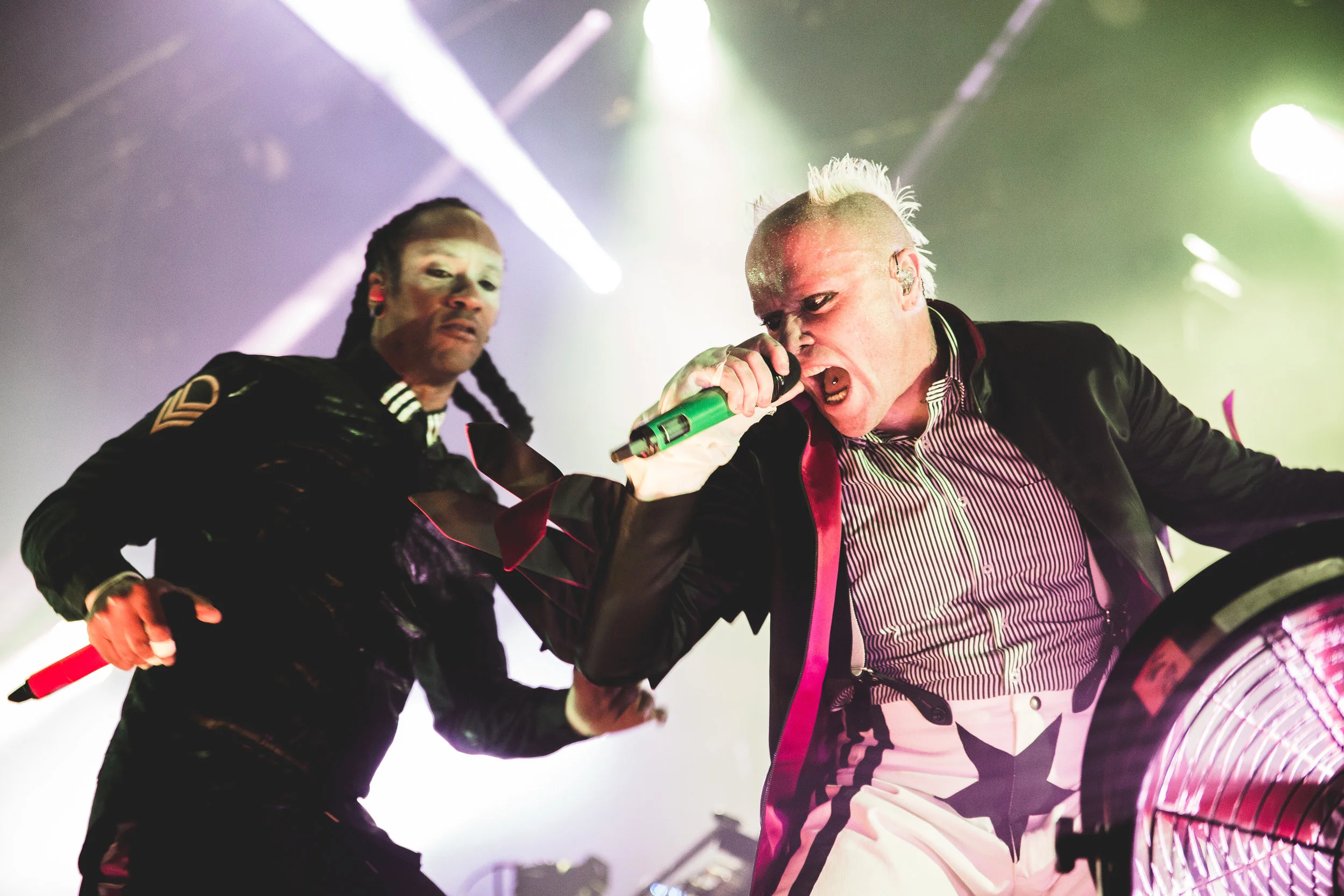 The Prodigy’s monumentally menacing new album sees the two vocalists, MC Maxim and Keith Flint, take more of a back seat to the musicality of songwriter and keyboardist Liam Howlett. This fortunately was not, and has never, been true of their live gigs.