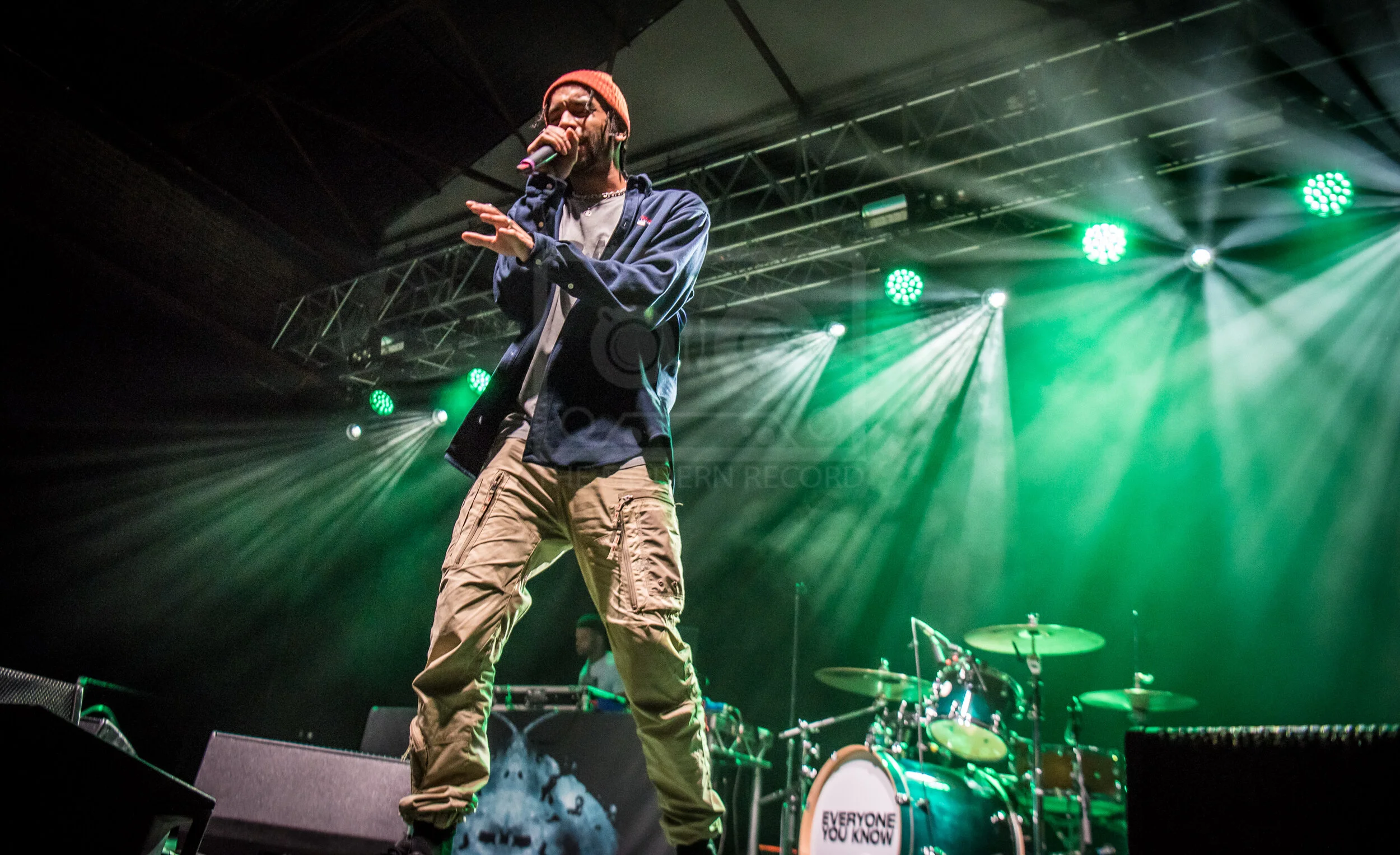 Second support act on tonight were Everyone You Know. They are Rhys Kirkby-Cox and Harvey Kirkby, they're half brothers, sharing a dad but not a mum, Harvey produces the beats and Rhys crafts the lyrics and the young duo are joined on stage with Paige Proctor on drums. The band have previous with Professor Green, having collaborated on his recent Matters Of The Heart track as joint producers. They say they are influenced by the record collections of their parents, drawn from the best of R&B, vocal house, Britpop, east coast hip hop, rave and jungle, and highlights of this can be heard on their music this evening.