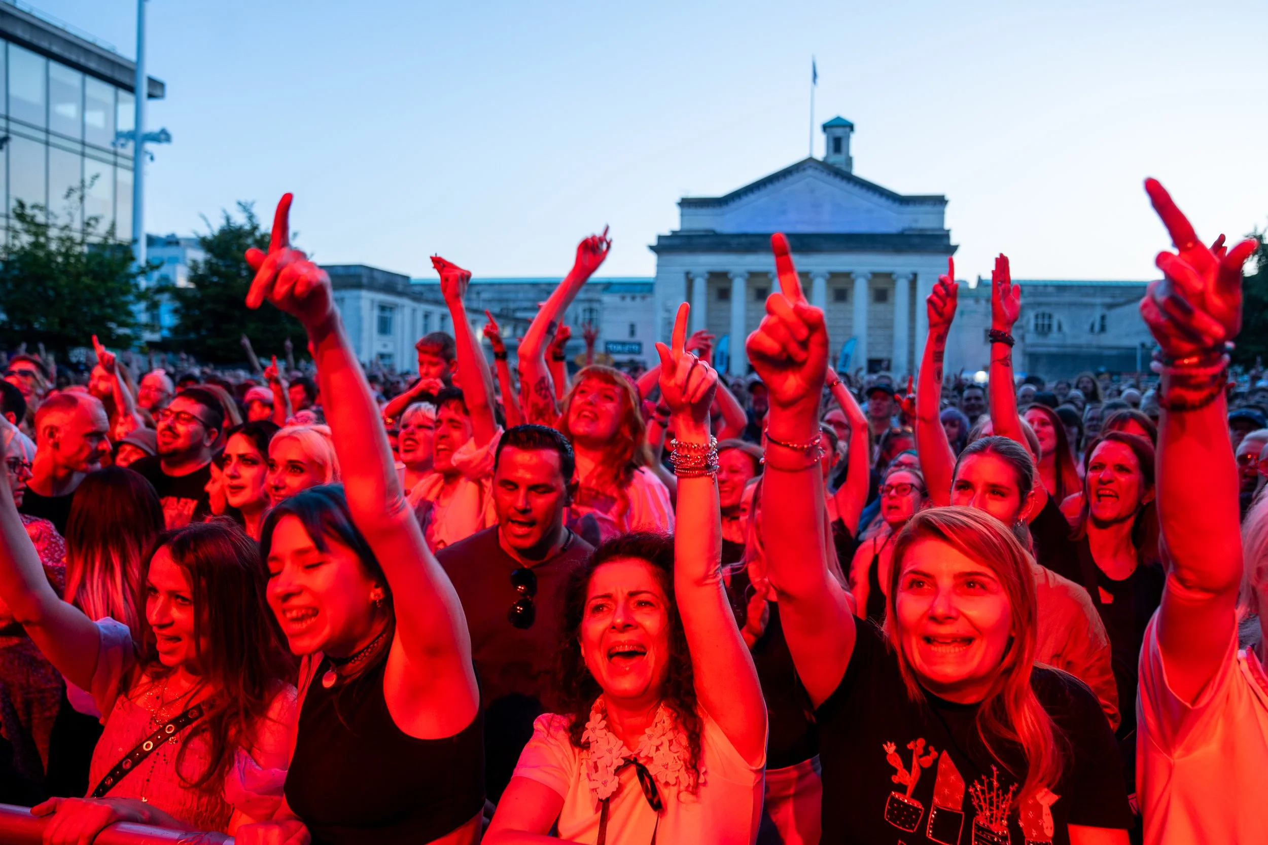 The British summertime continues in Southampton as the local crowd gathered early for another interesting gig at the city’s landmark Guildhall Square. First band on was Friedberg, who hail from London. Formed in 2019 by Anna Friedberg, the band has been quick to capture their audience with their soft and indie sounds, as well as interesting and dynamic performances. While the origins of the group are in London, there is a Berliner feeling into their music and lyrics. While the crowd was not as big as in other similar gigs this month, the attendees were fully committed to the band’s set, dancing along and swinging to the beats and the bass, as well as the post-punk guitar sounds and dreamy synth-pop influences. In an unexpected turn of events – or not so much because the name should have given this away – the band started singing in German, a mellow song with synth and pop blends that beautifully captured the audience’s attention.