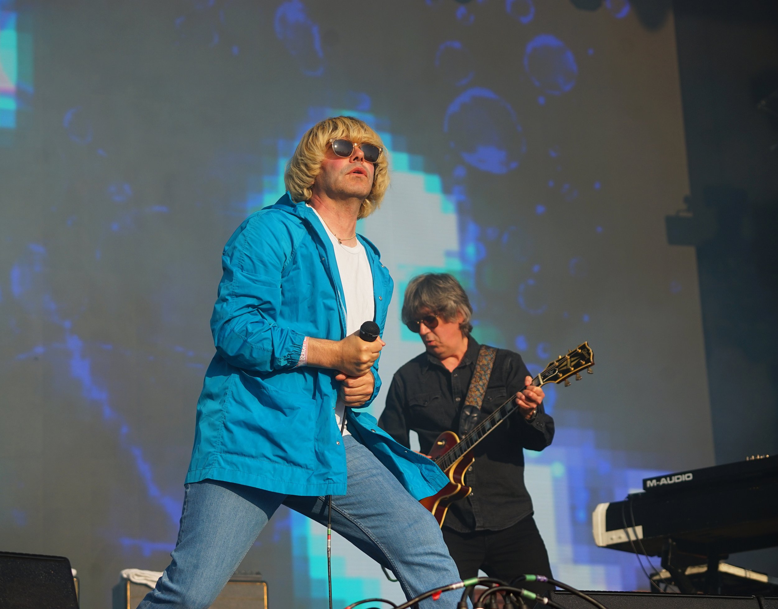 With the sun slowly setting in the golden hour, it was now rime for ‘The Charlatans’ and Tim Burgess always has ‘the’ stage presence with him bouncing around in a traditional 90’s style ‘baggy manner’