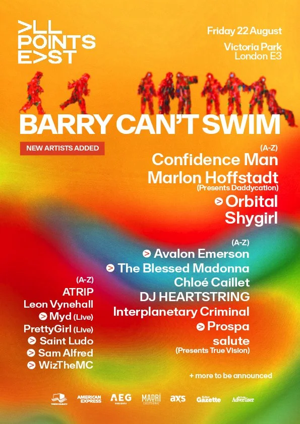 East London’s celebrated festival All Points East is excited to announce a new wave of acts taking over Victoria Park for Scottish DJ and producer Barry Can’t Swim's major headline show on Friday 22 August. The new artists added include Orbital, Avalon Emerson, The Blessed Madonna, Prospa, Myd, Saint Ludo, Sam Alfred and WizTheMC.