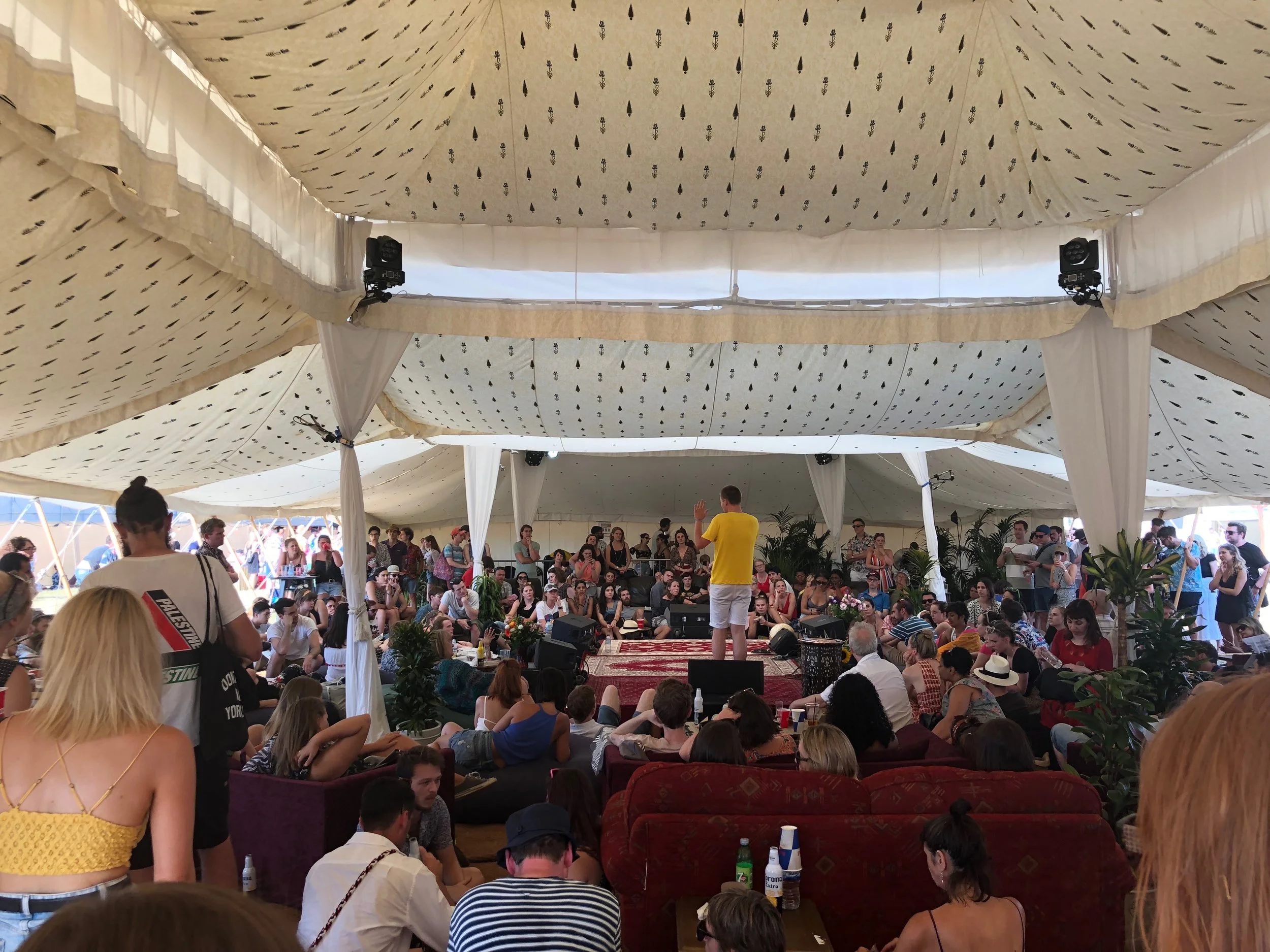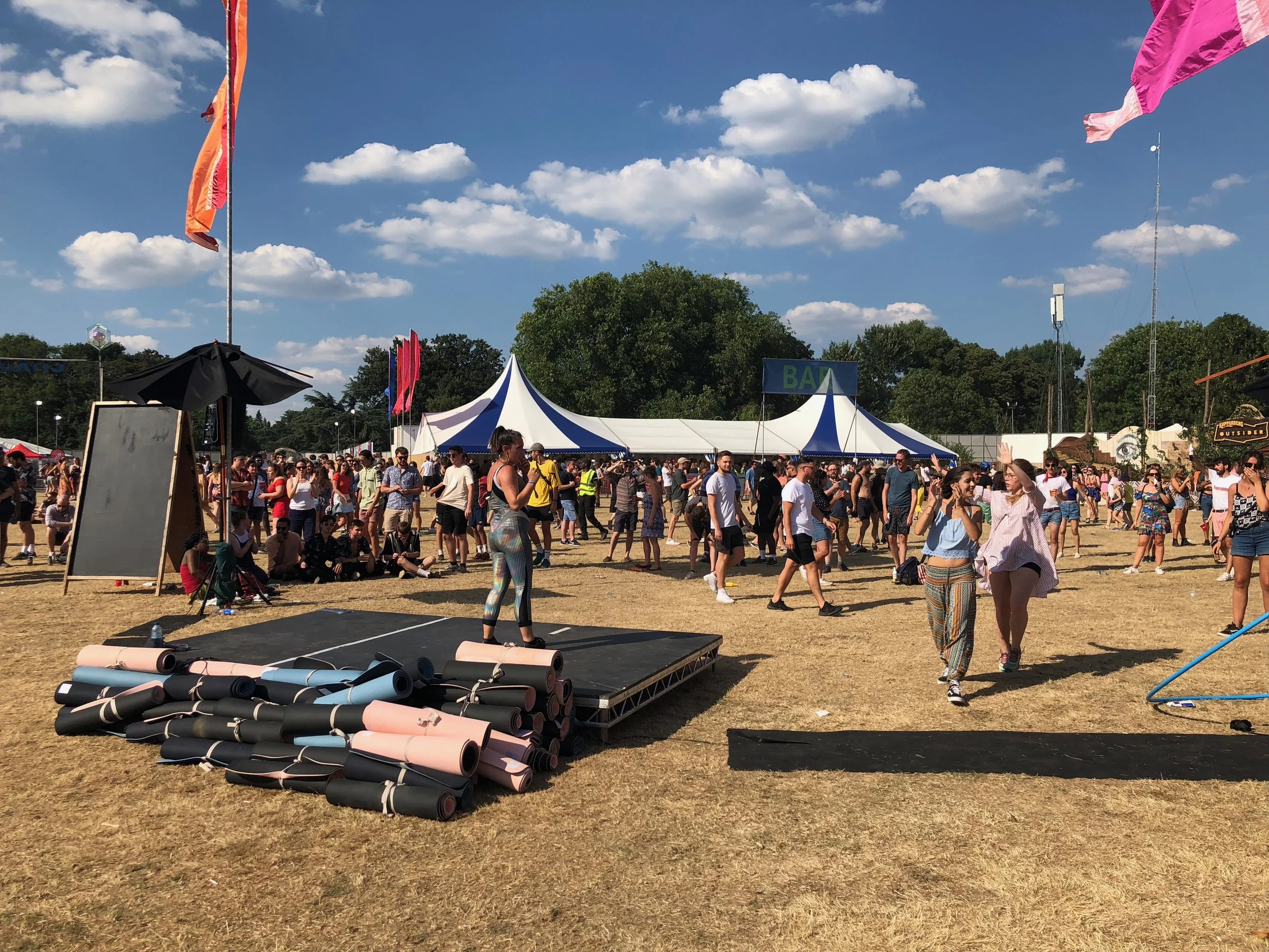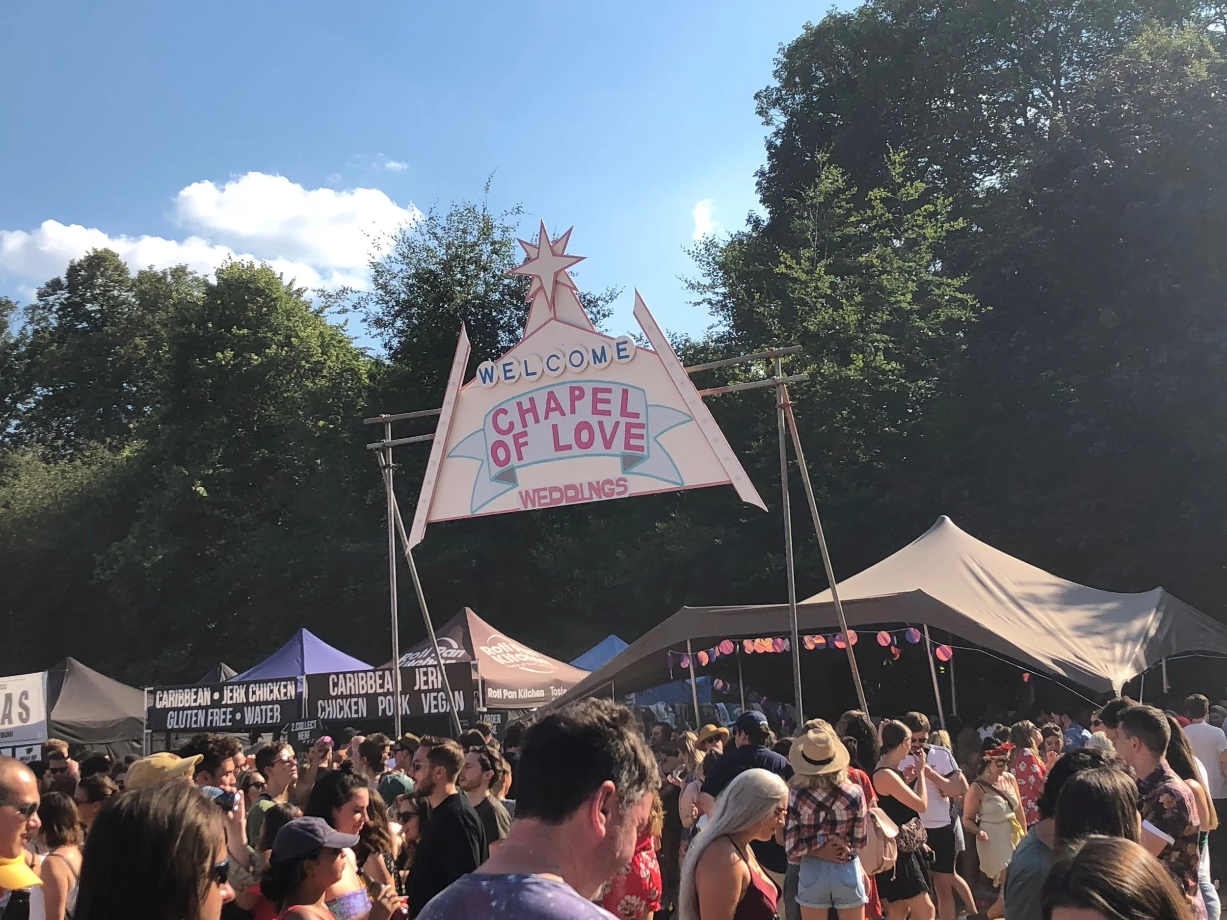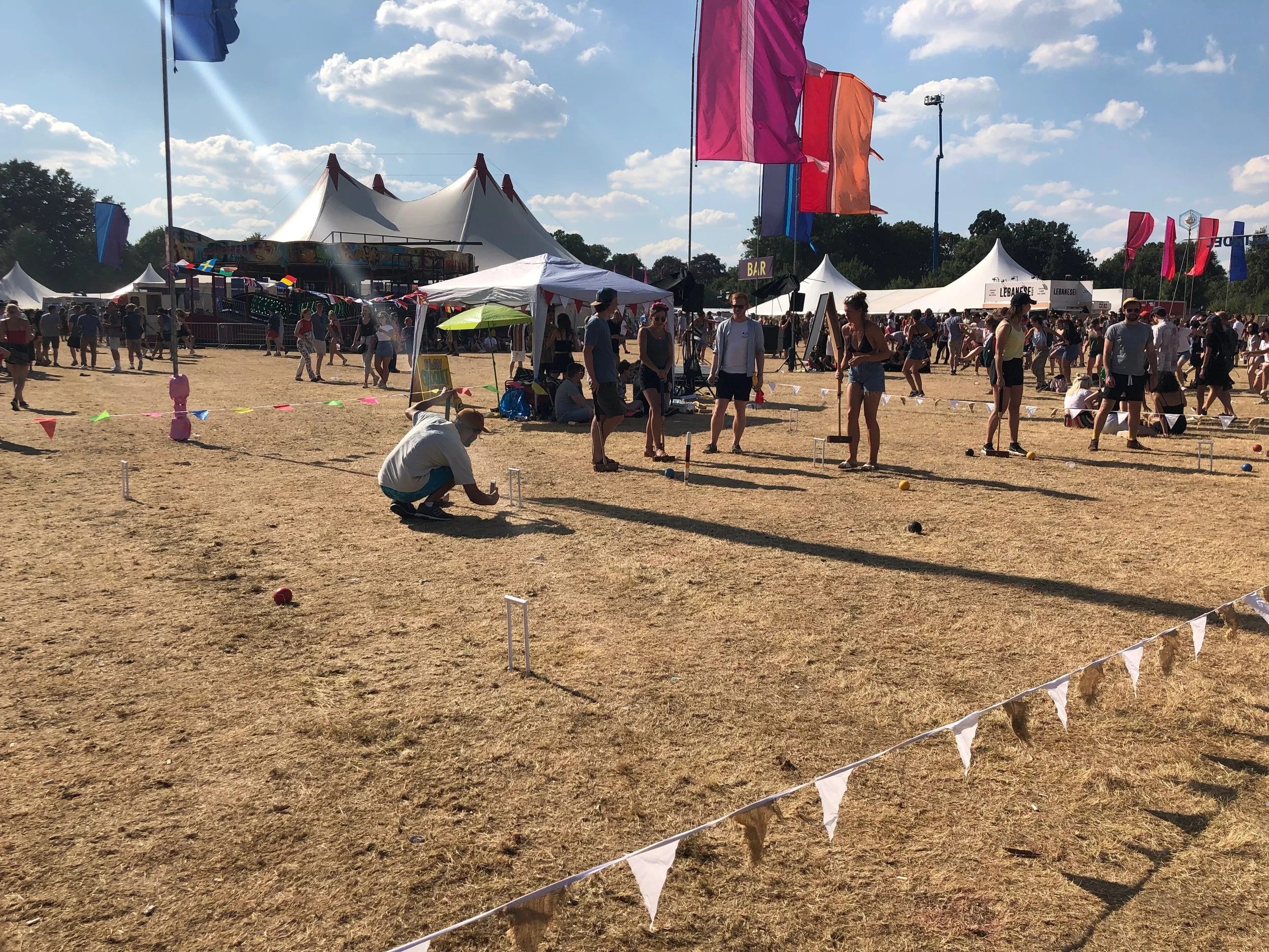 Walking onto the festival site the party was already in full swing, welcomed by glitter balls and blazing hot sunshine. It was like leaving London to find a little sparkly urban party paradise for an afternoon. Entertainment didn’t just come in the form of the numerous bands that filled the line up but also artists, poets, croquet, and yoga. Touted as a way of re-energising ‘the day of rest’ Citadel Festival strives to be a celebration of what we love about Sundays, be that day drinking with world class bands or indulging in good food after an intense sun drenched work out.