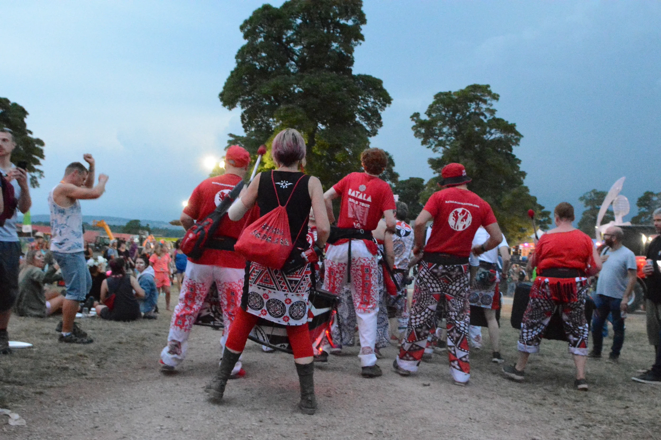 The rain which fall even seen festival revellers packed in the main arena wearing sun hats, shorts and even costumes replaced by standard festive outfits of ponchos and wellies.